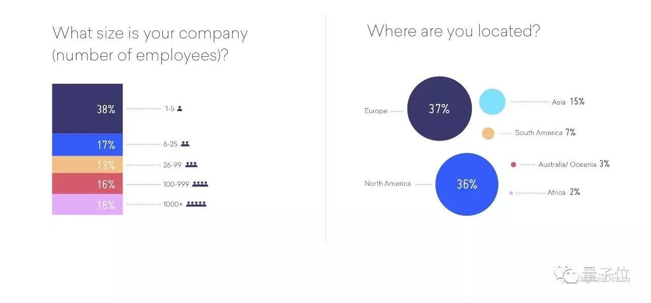 从地域来看,有37%的人工作地点在欧洲,36%在北美,15%来自亚洲。