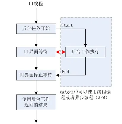 winform中很多任务是需要在后台线程(或类似)中完成的,也就是说,经常容易涉及到UI界面与后台工作线程之间的交互。比如UI界面控制后台工作的执行(启动、暂停、停止等),后台工作进度在UI界面上的显示。前两天一个员工在UI线程中访问数据库,刚开始数据库在局域网中,没感觉到什么,后来将数据库移到了外网,发现问题来了,至于问题原因想必诸位都知晓,更详细的解释请参考本系列博客(四)。后将这方面的东西整理了一下,如下:
