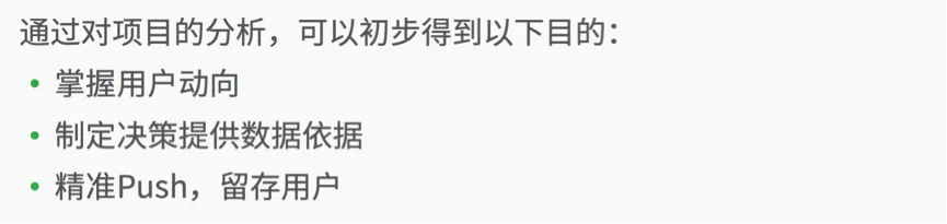 以上便是为大家介绍的项目背景(详细介绍,大家可以观看视频,这里就不赘述了),下面我们来看看项目的目的。如下图所示: