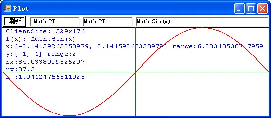 后来,根据“空间/IV”的评论,我写了个动态生成用户输入的函数表达式的类,用以改进这个画函数图形的C#程序。下面是该程序的运行效果: