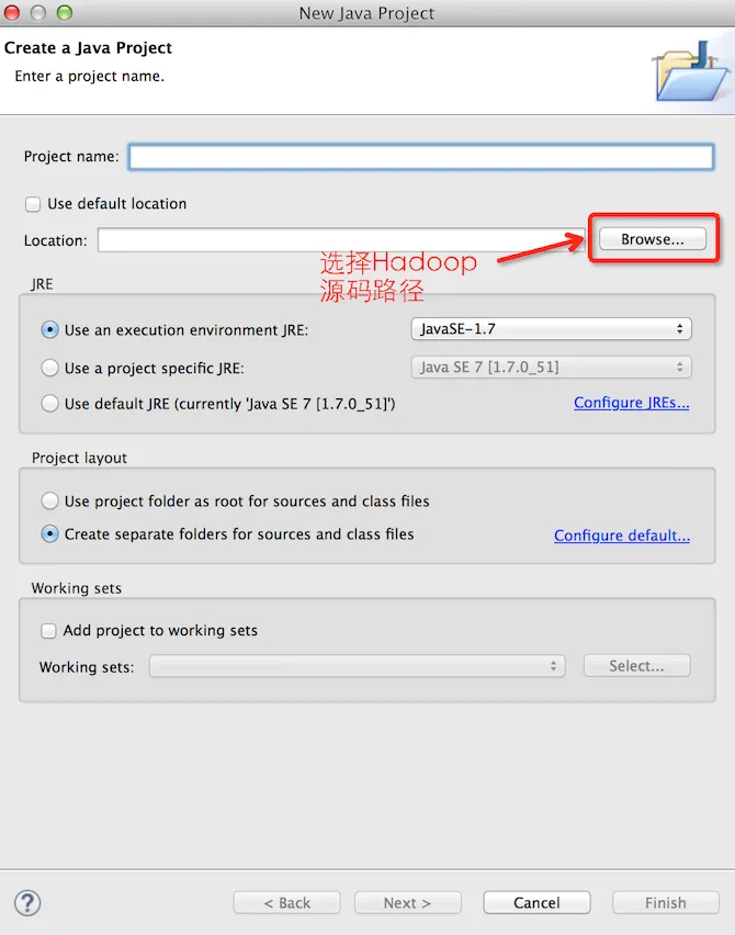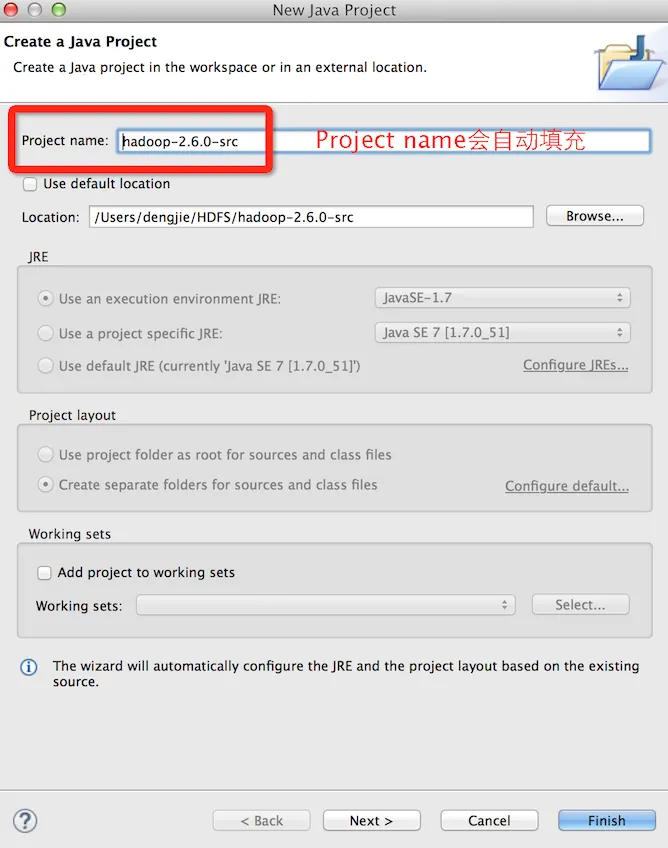 分析hadoop2源码的方式有2种,一种方式是使用maven结构来分析阅读Hadoop的源码,另一种方式使用一般的Java Project来分析阅读。首先先赘述下一般的Java Project创建Hadoop的源码分析工程。如下图所示: