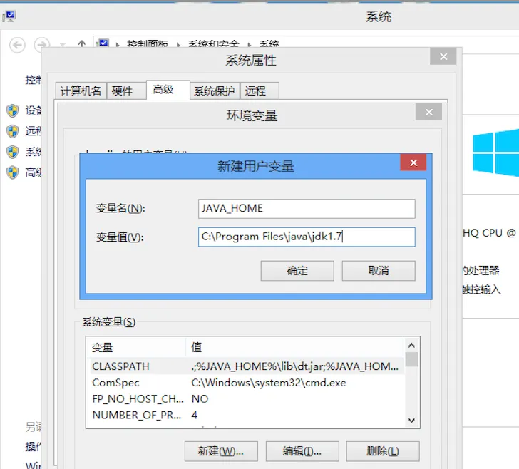 直接安装下的 jdk-7u75-windows-x64.exe 文件,一路默认安装即可,安装完成后在 cmd 下输入 java -verison 若显示对应的版本好,即表示安装成功。若出现 “java 不是内部或外部命令”的错误提示,可在 Windows 的环境变量下设置JAVA_HOME,和PATH以及CLASSPATH等环境变量即可。如下图所示: