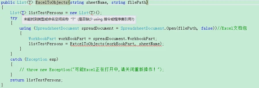 也就是,public List<T> ExcelToObjects<T>(string sheetName, string filePath){...}