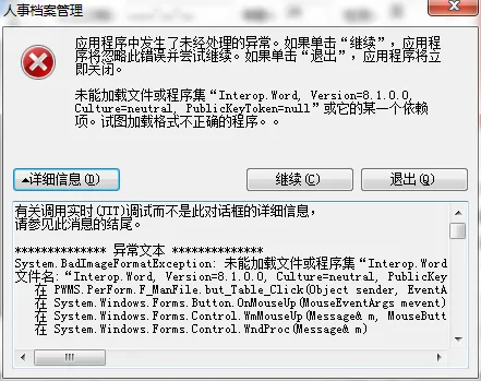 刚开始以为是所引用程序库文件Interop.Word的版本不对,结果折腾了半天还是错的。最后根据文章[1],才得知是32版本的dll当被生成Any CPU类型的可执行文件时存在极大地不稳定性,当64位的系统运行这种调用32dll的代码段时,就会发生如上图所示的错误。血的教训啊,浪费了1个多小时。希望以后不会犯这样的低级错误。