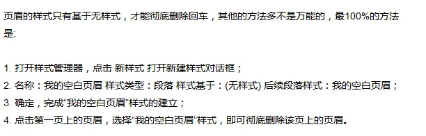 其次,对于页眉页脚中的回车符号的删除,网上绝大多数方式都是文不对题的。下面给出的一种方法相对更靠谱,但实施起来比较麻烦。