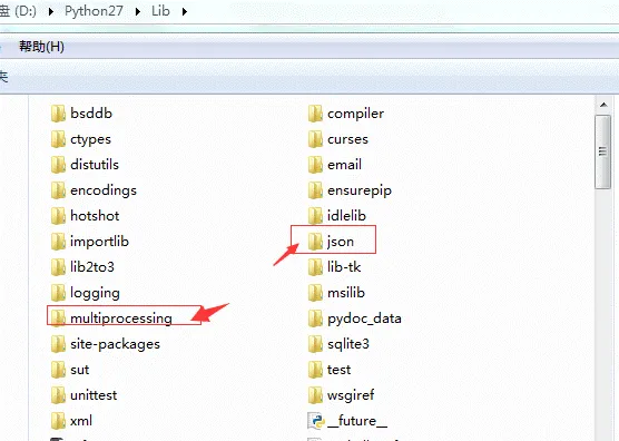 Json API 使用:python在版本2.6之前,是需要先下载包,安装后才能使用的,有点类似现在的RF内使用SeleniumLibrary一样。但是在2.6中,官方文档(https://docs.python.org/2.6/whatsnew/2.6.html)明显指出,“有一些重要的新的软件包添加到了标准库,比如multiprocessing 和json,但是跟python 3比,2.6的这些包不会引进更多的新功能。"于是安装python2.6以上版本的童鞋,可以不需要下载json包,直接在所需的地方就import json 即可使用,在安装目录下的Lib 下,看到这两个包(点进去仔细阅读这些源码,会有更多的收获,)如下文所示: