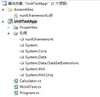 3、新建测试项目UnitTestApp(示例为简单的控制台应用程序),引入nunit.framework类库(默认安装后文件所在路径:C:\Program Files \NUnit 2.6\bin\framework\nunit.framewor.dll)