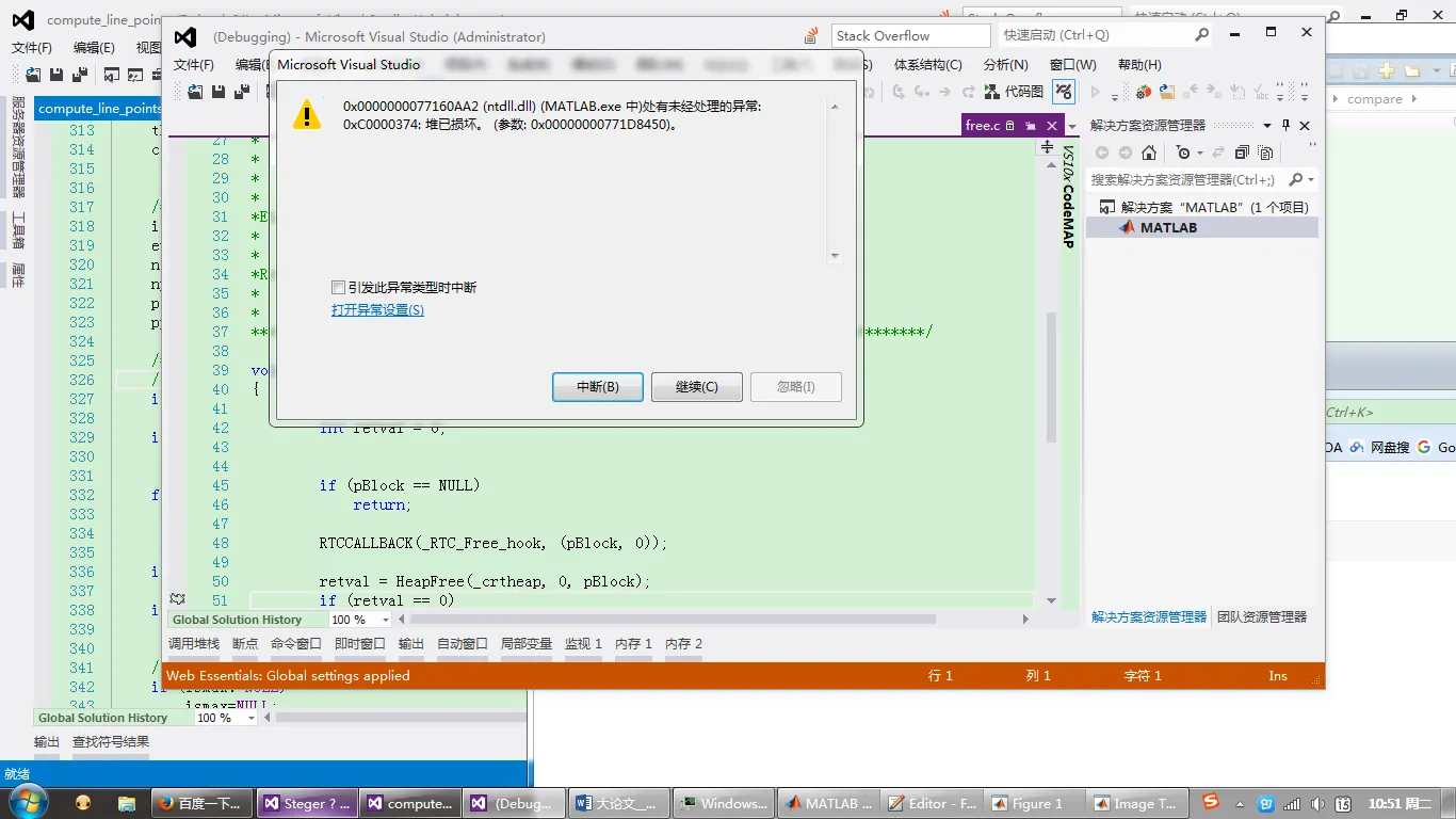 (ntdll.dll) (MATLAB.exe中)处有未经处理的异常:0xC0000374:堆已损坏