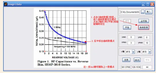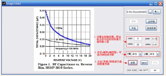 前一段时间看到一篇文章"利用Matlab提取图图片中的数据",觉得思路挺好,遂下载下来研究了一番,发现作者所编写的程序没有考虑原始图片非水 平放置的情况,而实际扫描图片时,将图片完全放置水平难度较大... 同时作者也没有考虑对数坐标的情况,且程序GUI界面不太人性化,操作有点不习惯。因此借着作者良好意愿,对其程序进行了改进~