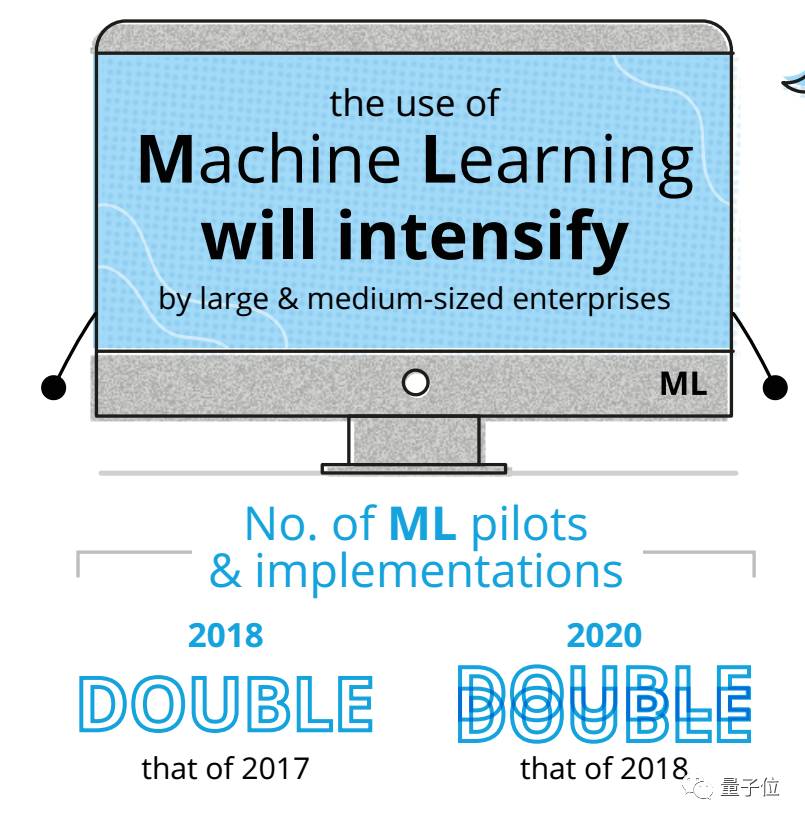 德勤预测,在2018年,大中型企业将更加看重机器学习在行业中的应用。和2017年相比,用机器学习部署和实现的项目将翻倍,并且2020年将再次翻倍。