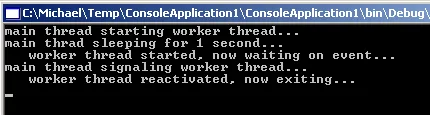 Console.WriteLine(" worker thread started, now waiting on event