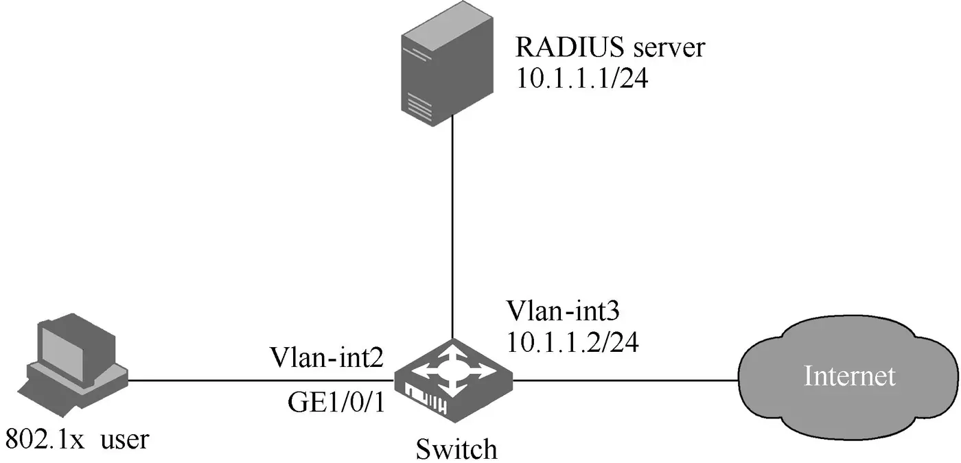 图18-6 802.1x用户RADIUS认证、授权和计费配置示例