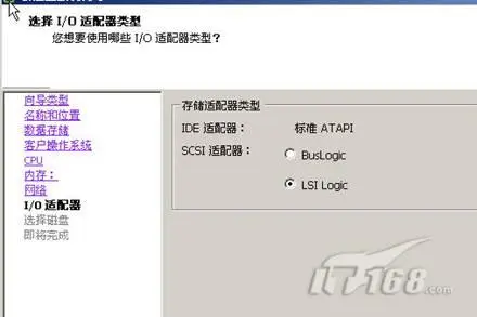 7、 在"选择I/O适配器类型"页,选择SCSI适配器的LSI Logic。"下一步"(图3)