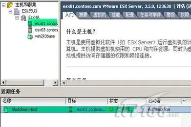 1、点击右侧面板的"esx01.contoso.com",右键,关闭。一段时间后,在下侧的"近期任务"中,可以看到关闭已完成。(图13)