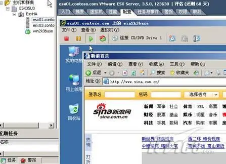 17、下图便是更改过IP地址并与物理网络相联后,在虚拟机WIN2K3里访问新浪的情况。此图说明虚拟机和物理网络通讯没有问题。(图10)