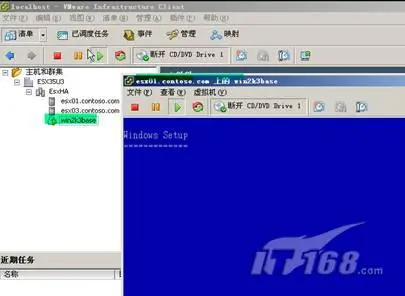 在本篇中,将要讲述如何在群集节点之一的ESX主机上安装虚拟机,以及如何验收上篇中新建的VMwareHA是否生效。