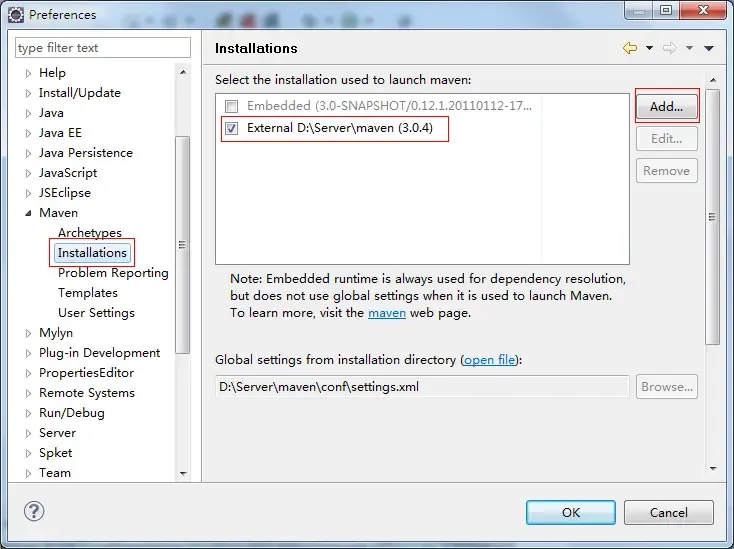 1. 点击 Add 按钮,选到你本机安装 maven 的路径值