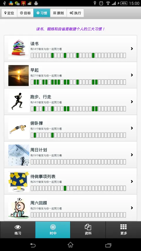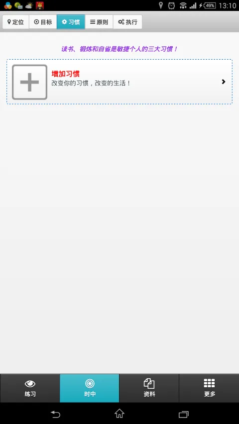打开手机应用(下载见 http://www.zhoujingen.cn ),切换到【时中】的【习惯】页签