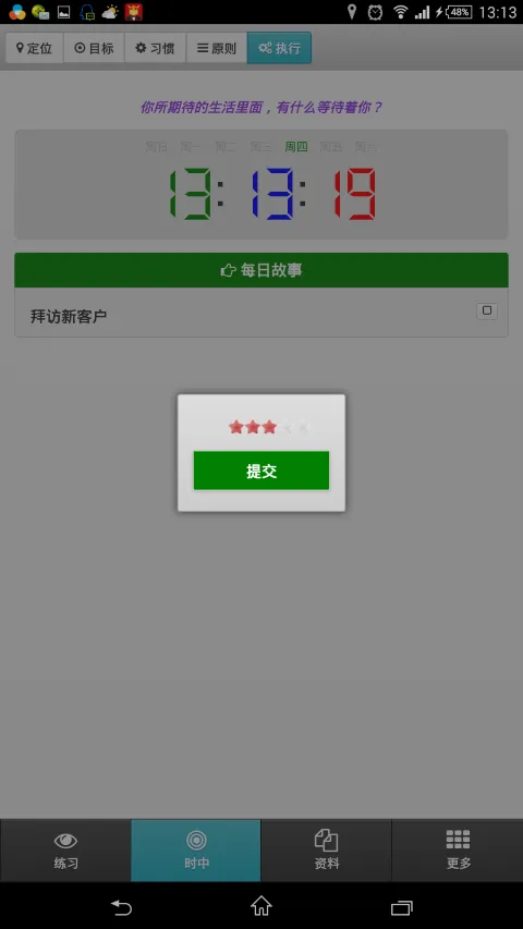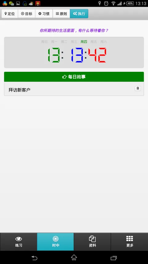 每个习惯都会对应到一个任务,切换到【执行】页面,你可以看到一个【每日故事】按钮