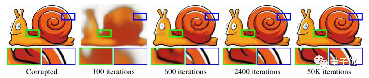 其中蜗牛图的恢复为典型的JPEG压缩图像的盲修复问题,通过不断迭代,这种新方法可以恢复大部分信息同时消除色圈和块效应。