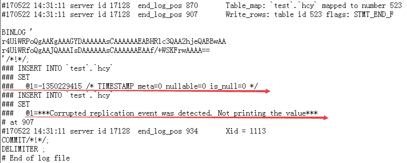 2、Corrupted replication event was detected. 检测到复制被损坏。