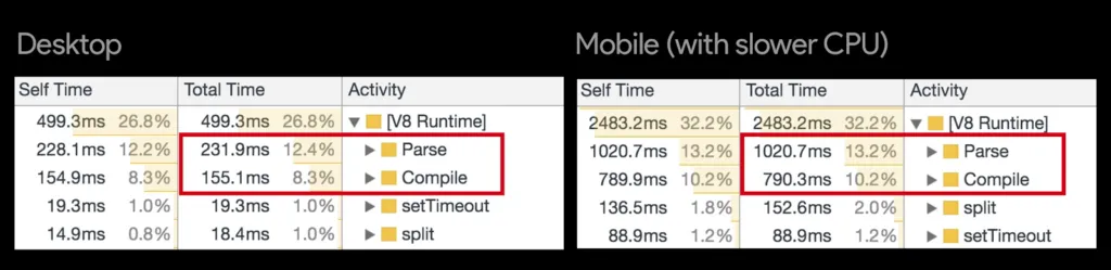 1. 虽然 JavaScript 解析的时间长度和包的大小不是完全线性的,但是需要处理的 JavaScript 越少,则所花时间越少。
