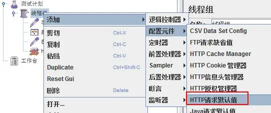 右键”线程组”-添加-配置元件-HTTP请求默认值