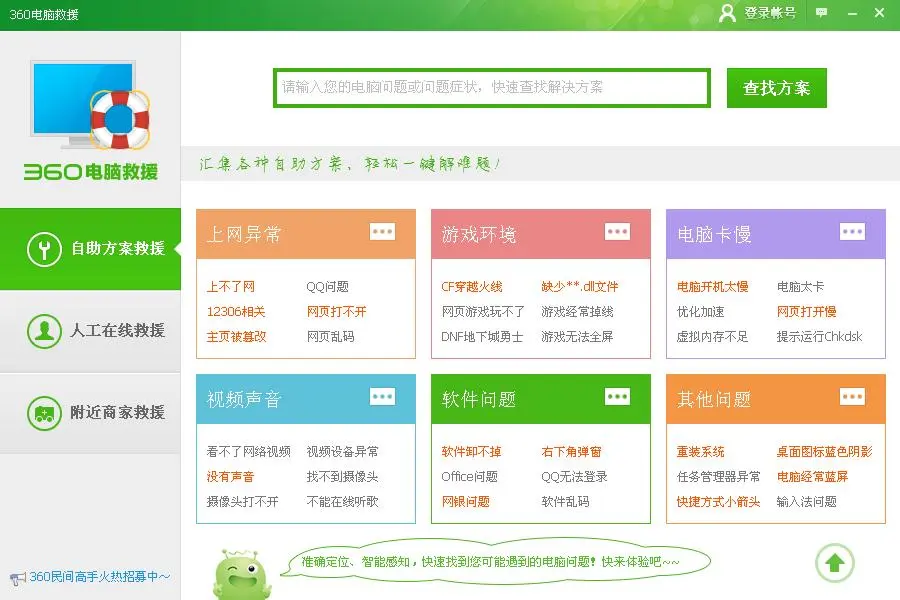打开360[电脑救援 ],直接让它帮你解决吧!