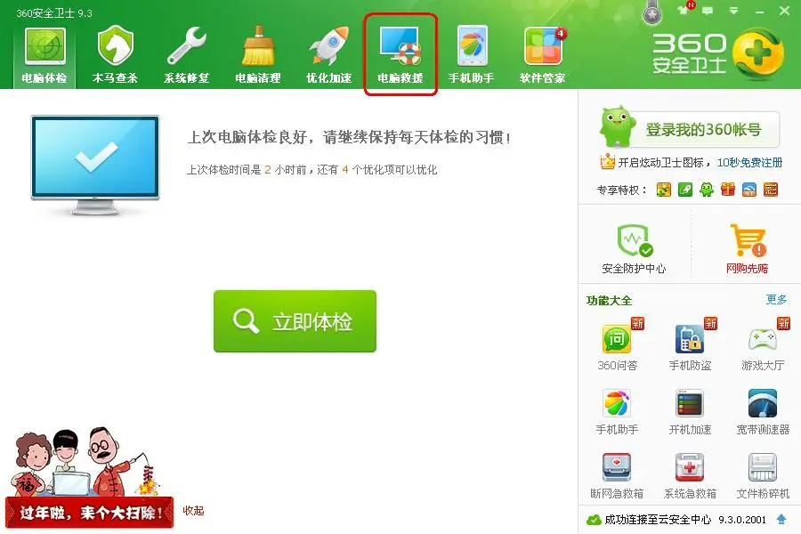 简介: 打开360[电脑救援],直接让它帮你解决吧!