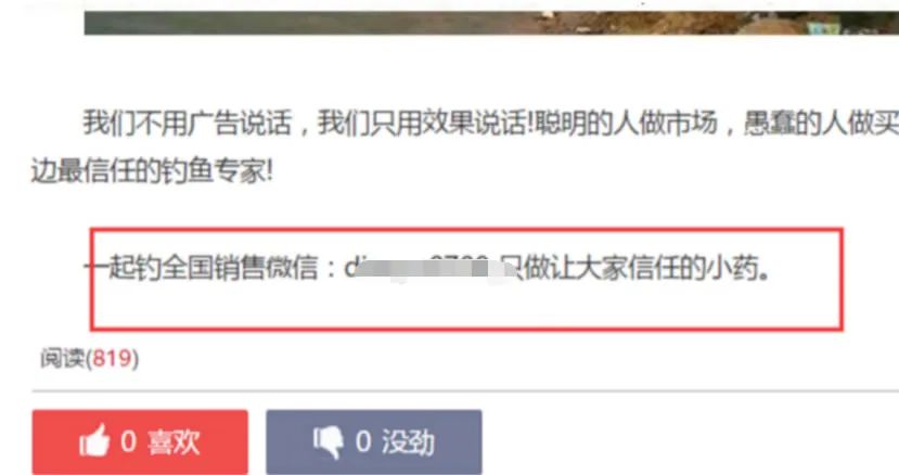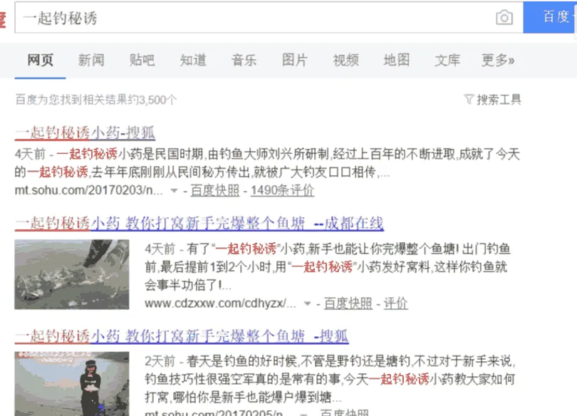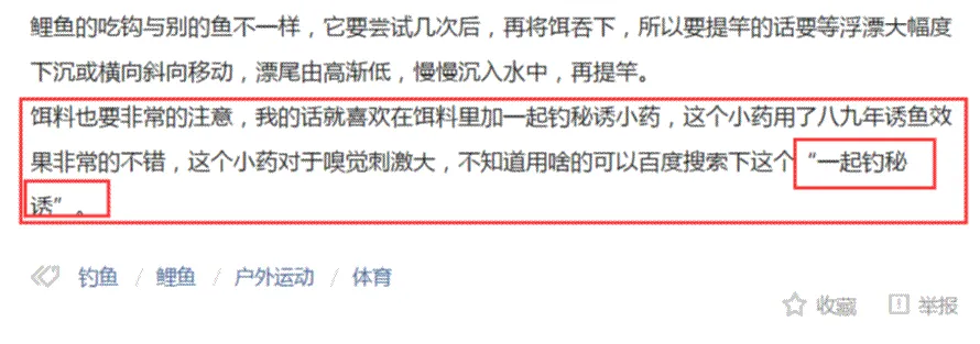 ①:这是钓鱼小药的品牌推广,文章通过软文的形式去宣传这个小药的,最后让大家去百度上搜索这个品牌词的。