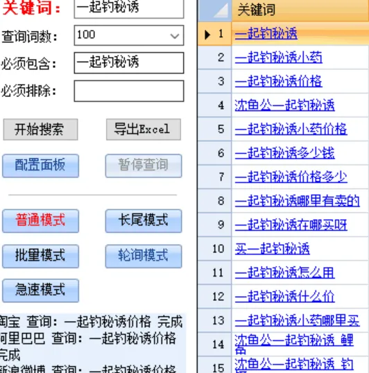 比如一起钓蜜诱 品牌词,我看看用户在搜索哪些词 ,如图: