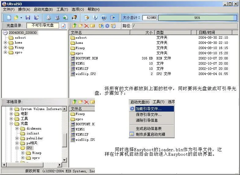 到这里我们的光盘已经基本做好了,下面要做的就是制成ISO,用虚拟机测试,成功后刻录光盘了.这里轮到UltraISO登场了:
