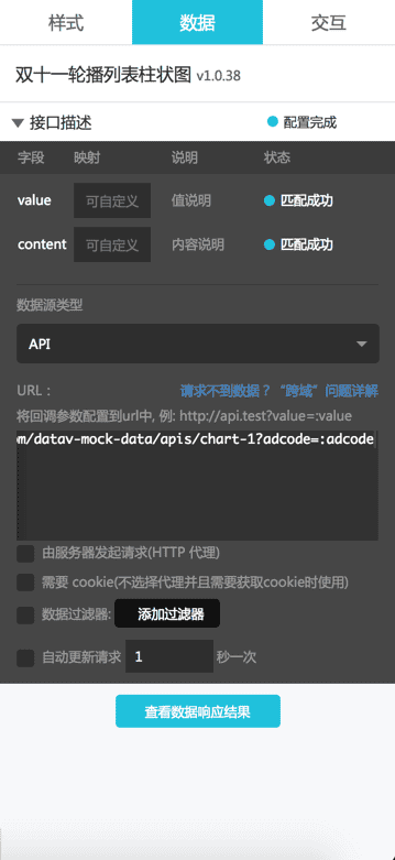 数据url填写 http://service.datav.aliyun.com/datav-mock-data/apis/province?adcode=:adcode