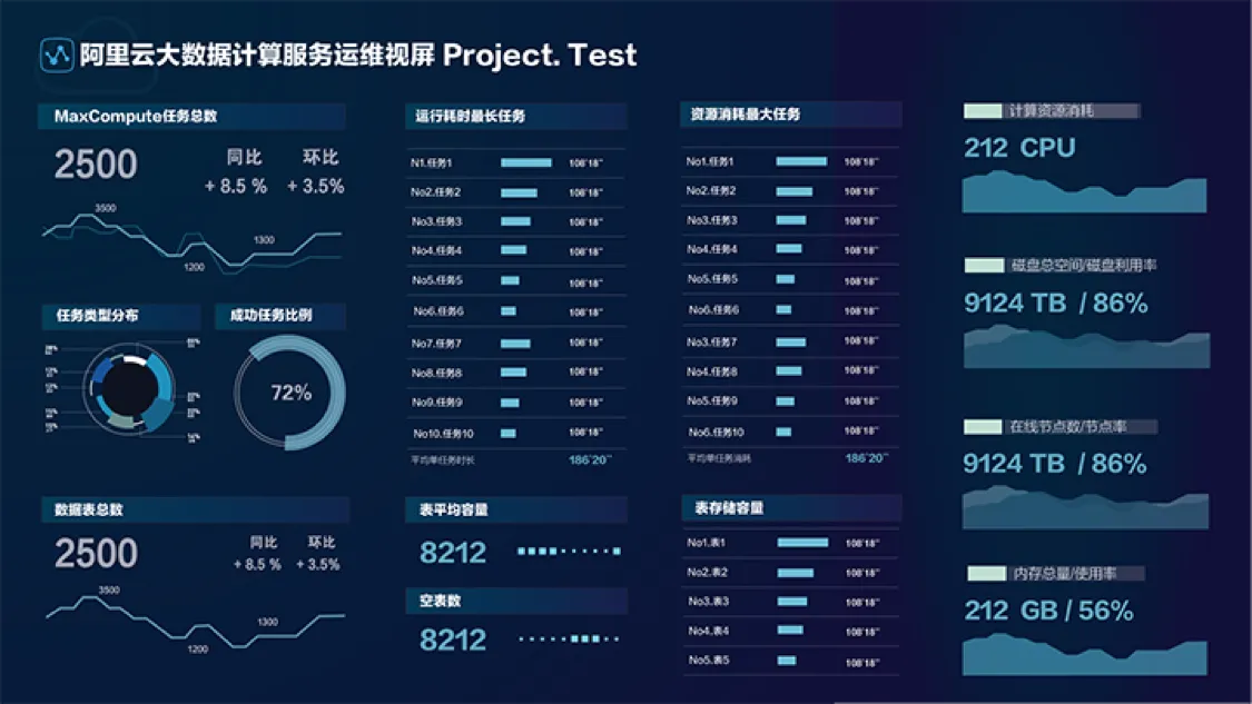 通过运维大屏,能够及时把握机器负载,数据调度,生产任务等状况,对资源的管理有的放矢。