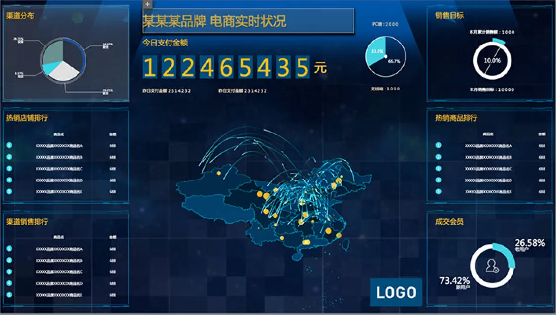 通过数据综合展示大屏,是作为科技类互联网公司参与各类会展、会议对外展示自身业务情况与发展的最佳方式。