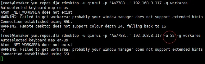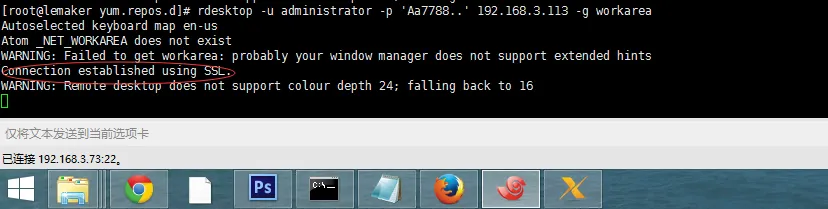 Remote desktop does not support colour depth 24; falling back to 16