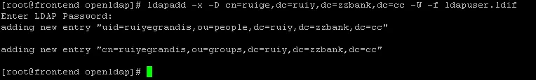 ldapadd -f base.ldif -x -D cn=ruige,dc=ruiy,dc=zzbank,dc=cc -W