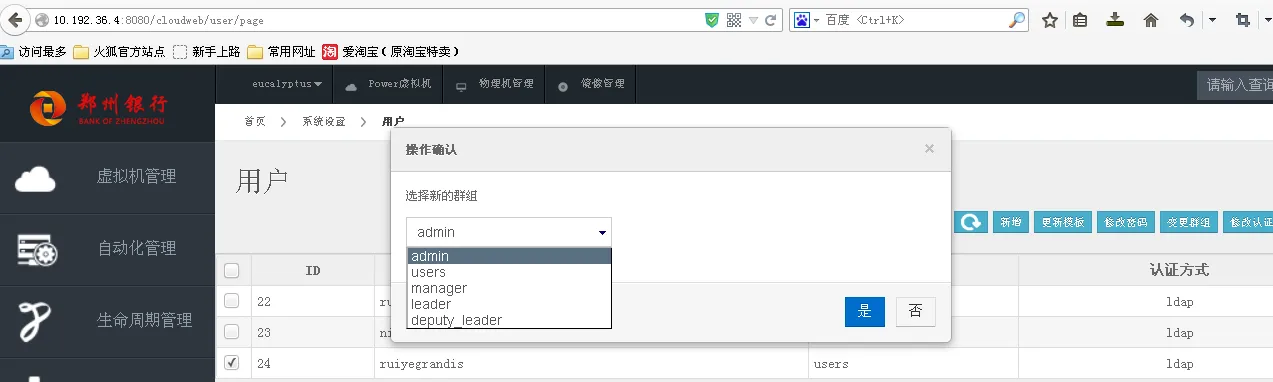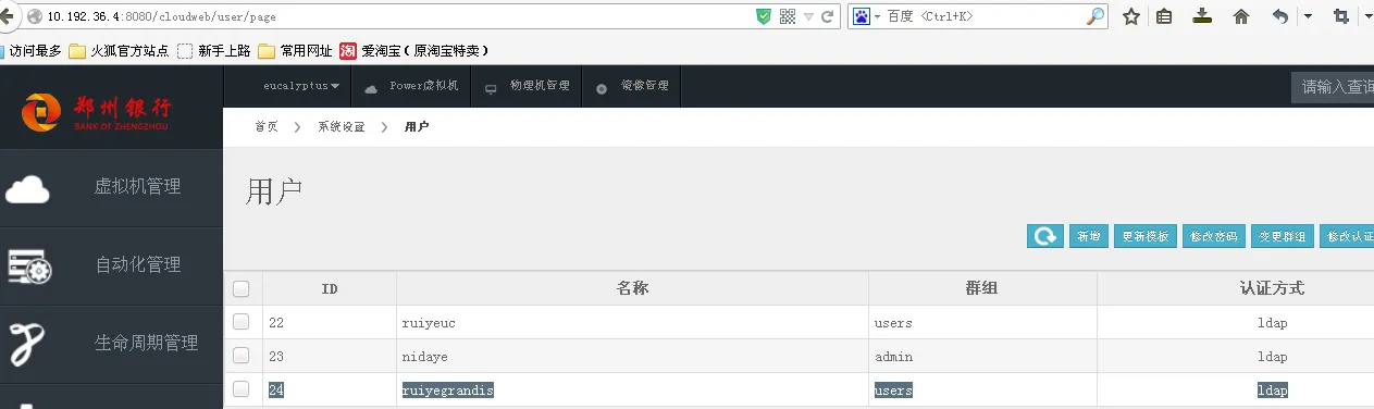 Ldap创建的账号会在opennebula中自动生成创建账号,默认账号属于OpenNeNebula users 组