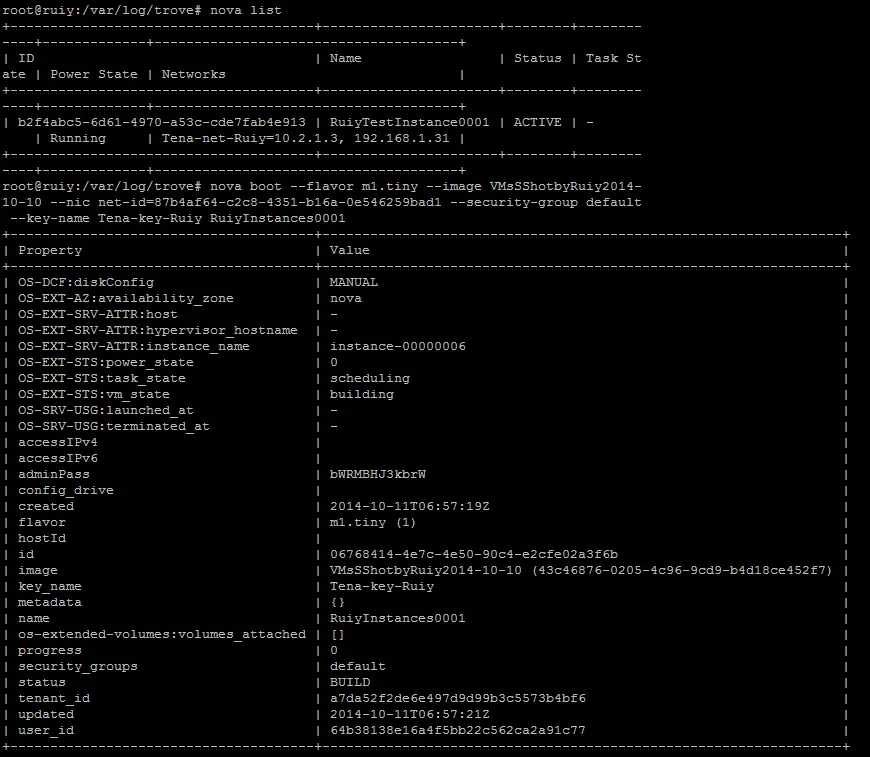 2,launch an instance,you must at least specify the flavor,image name,network,security group,key,and instanceName