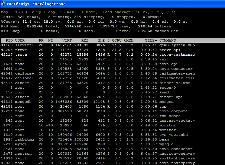 跑OpenStack 10个全组件(跑2个instances)OS负载