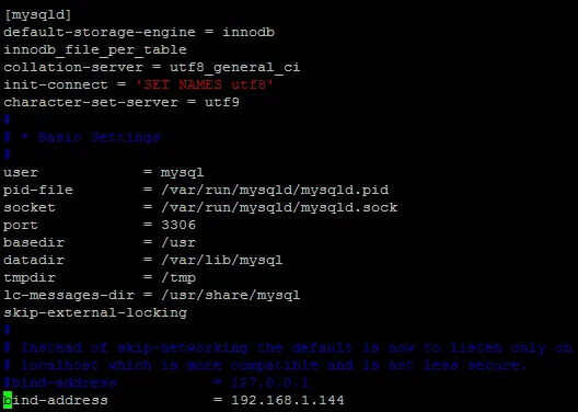 character set, and UTF-8 collation,bind-address(Management Ip address enable other host access)