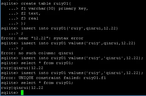 sqlite3中sql必须要以;结尾,sql语句就是以;判断语句句尾的,但sqlite命令尾部则不用加;