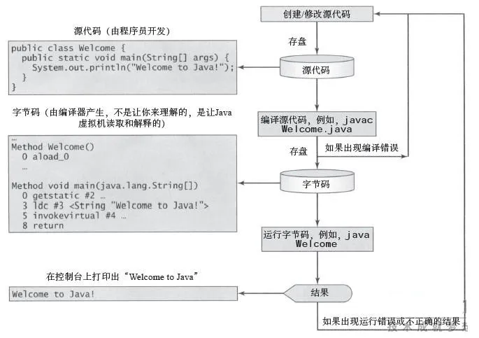 | *.java→*.class→机器码 java编译器 (编译) → 虚拟机(解释执行) → 解释器(翻译) → 机器码 |