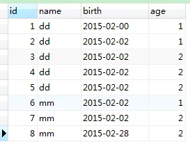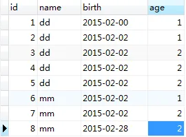 在mysql中没有强调select指定的字段必须属于group by后的条件。若符合条件的字段有多个,则只显示第一次出现的字段。比如:以name为dd分组,id为1,2,3,4,5,但只显示1.同理,age也只显示1.