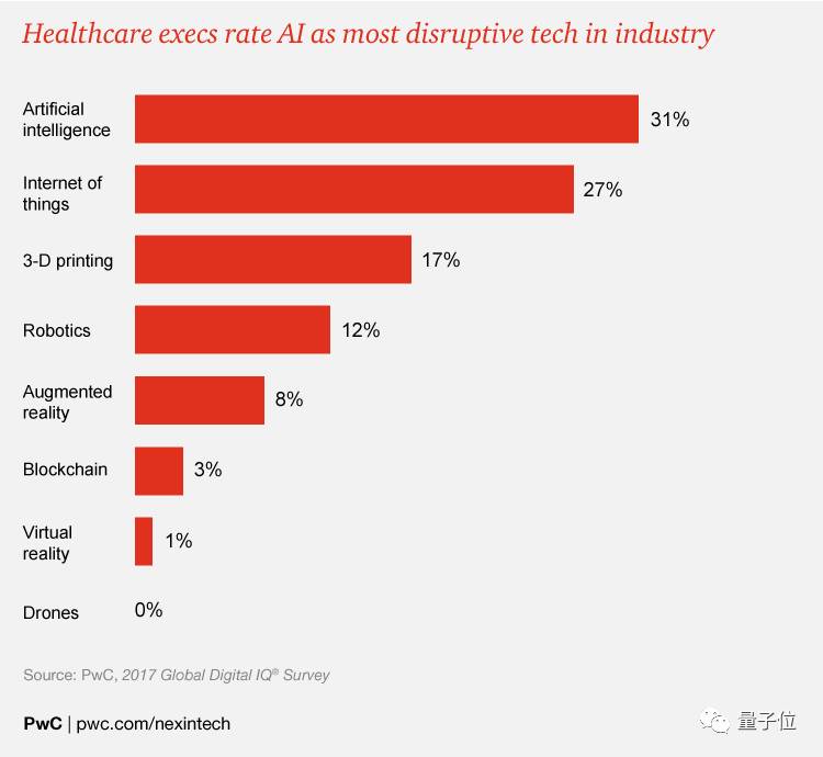 据普华永道调查显示,医疗行业的高管普遍认为,AI是医疗行业中最具颠覆性的技术。
