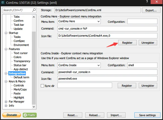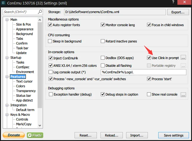 ConEmu是一款多标签的集成工具,不但可以集成cmd,还可以集成Cygwin和PuTTY窗口,clink加强了cmd的功能,如ctrl+v
