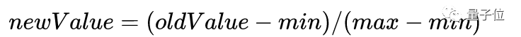 在处理这种不同取值范围的特征值时,我们通常采用的方法是将数值归一化,如将取值范围处理为0到1或者-1到1之间。下面的公式可以将任意取值范围的特征值转化为0到1区间内的值: