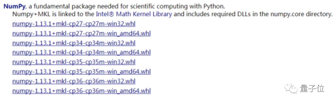 找到对应python版本的numpy+mkl和scipy,下载安装即可,如图3.3和图3.4所示。