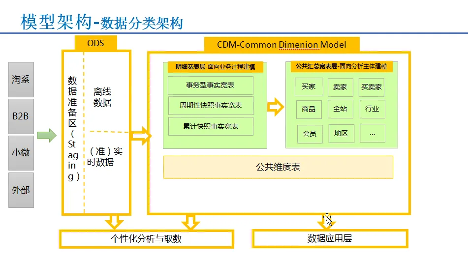 将数据分为ODS(操作数据)层、CDM(公共维度模型)层、ADS(应用数据)层。